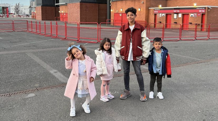 Georgina Rodriguez e os irmãos do craque mais novo da família Aveiro, não faltaram à cerimónia no estádio Old Trafforde e posaram orgulhosos ao lado do jogador de 11 anos de idade.