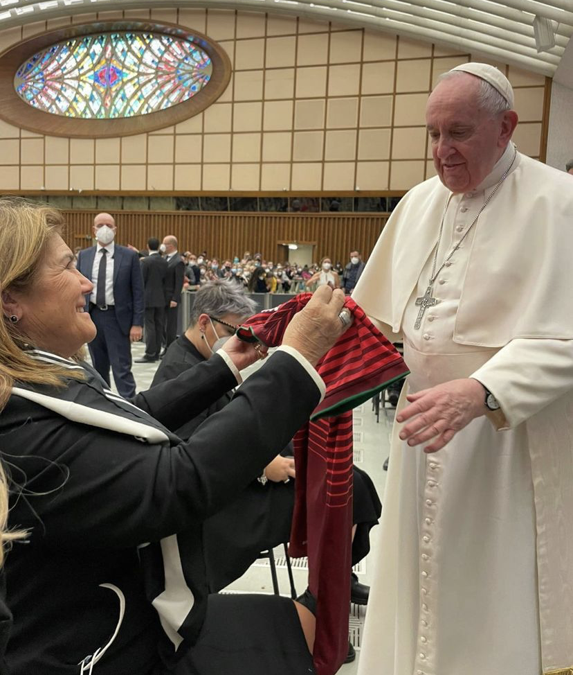 A matriarca da família Aveiro levou um presente para oferecer a Francisco, uma camisola do filho. Amante confesso do futebol e adepto do Club Atlético San Lorenzo de Almagro, o sumo pontífice decerto que apreciou o gesto da mãe do craque português.