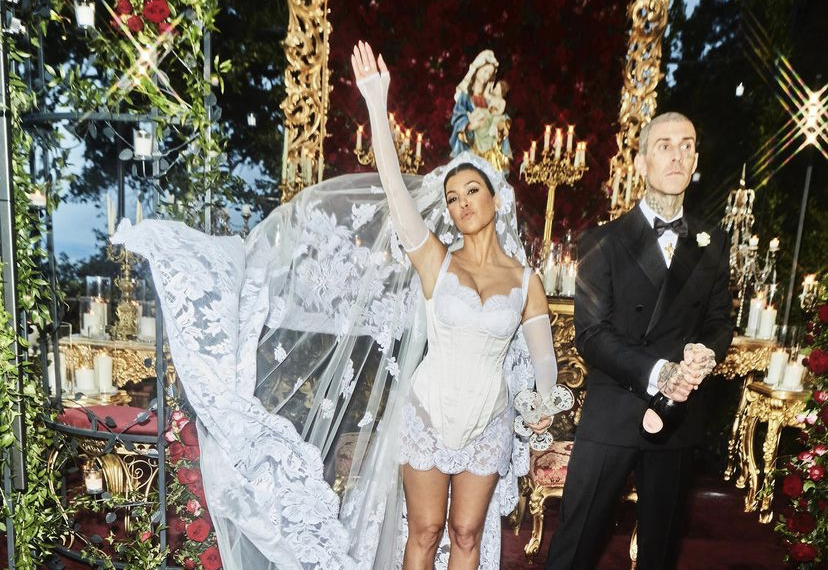 Kourtney Kardashian e Travis Barker trocam votos de casamento pela terceira vez