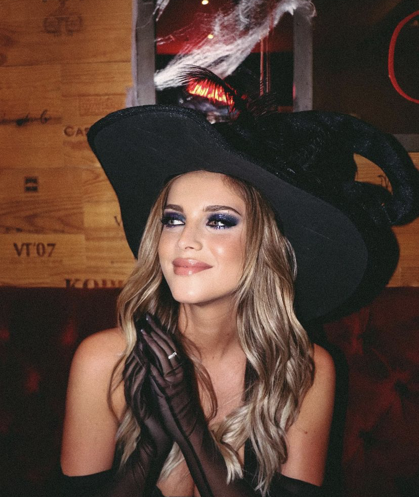 Júlia Palha encarna bruxa sensual em festa de aniversário