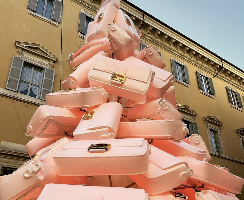 A casa de moda italiana Fendi fez a sua árvore de Natal inspirada na sua icónica carteira Baguette, que completa este ano 25 anos. A Fendi fez a impressionante árvore de Natal com 5,50 metros de altura em frente ao Roma Palazzo FENDI, outra de 3 metros na Paris Avenue Montaigne e outra de 6 metros na loja pop-up Shanghai Plaza 66. O jogo de luzes vai dando diferentes cores às malas de luxo.