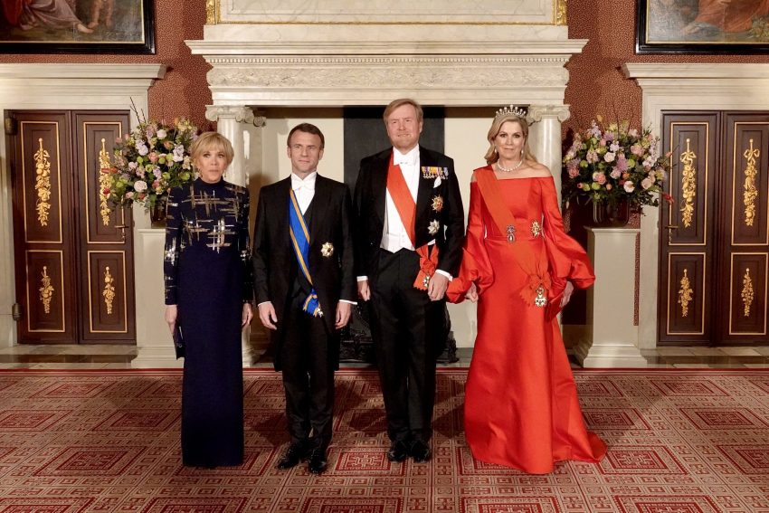 O presidente francês e a esposa, encontram-se em visita de Estado à Holanda e, como é tradição, após uma cerimónia de boas-vindas, o primeiro dia terminou com um banquete real oferecido por Willem-Alexander e Máxima.