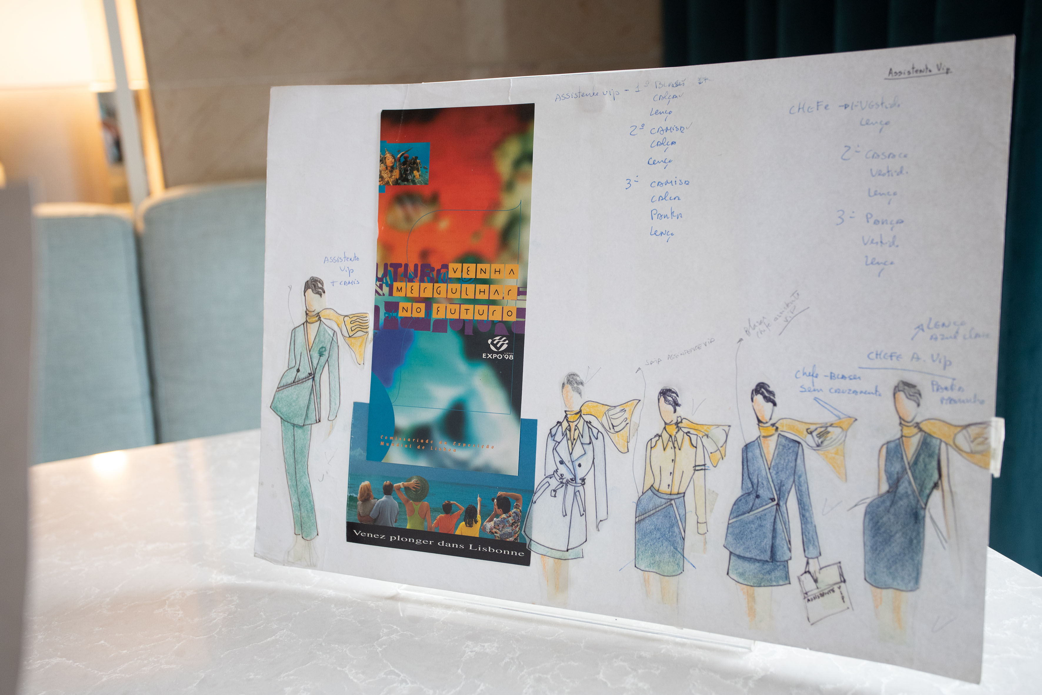 Sassetti convidou Maria Gambina e José António Tenente, estilistas responsáveis pelas fardas dos funcionários e colaboradores da exposição, para se juntarem à comemoração e ainda conseguiu que o Museu de Lisboa e o colecionador e vitrinista Joao Carlos Pereira emprestassem algumas modelos, trazendo a todos os convidados boas memórias.