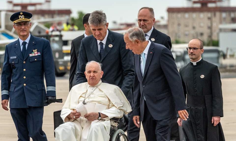Já no Palácio de Belém, o Papa escreveu em português no livro de honra: “Peregrino da esperança em Portugal, rezo e faço votos para que este país de coração jovem continue a fazer-se ao largo rumo a horizontes de fraternidade; Lisboa, cidade do encontro, inspire modos de enfrentar em conjunto as grandes questões da Europa e do mundo“.
