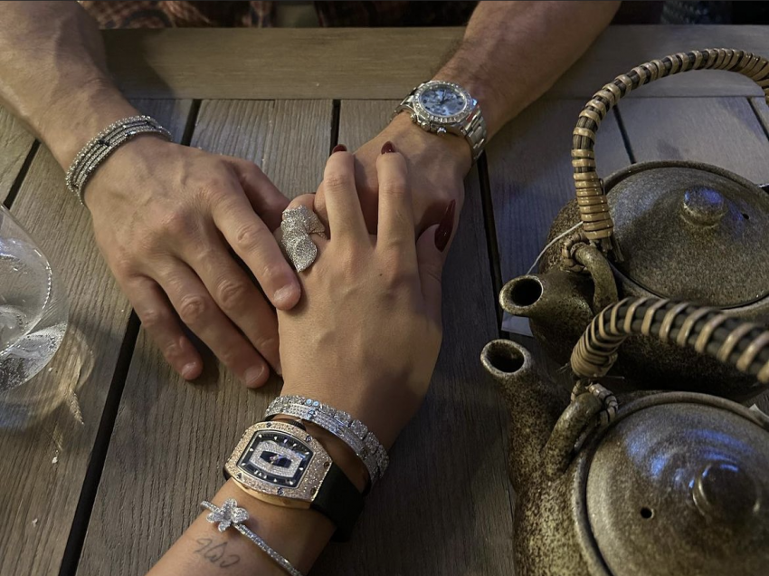 Na imagem em que suas mãos estão entrelaçadas, podemos ver os impressionantes anéis, pulseiras e relógios de ambos. Cristiano é o seu melhor apoio em todas as iniciativas e projetos e também será neste processo.