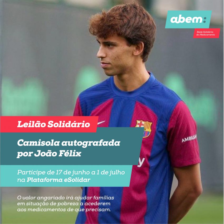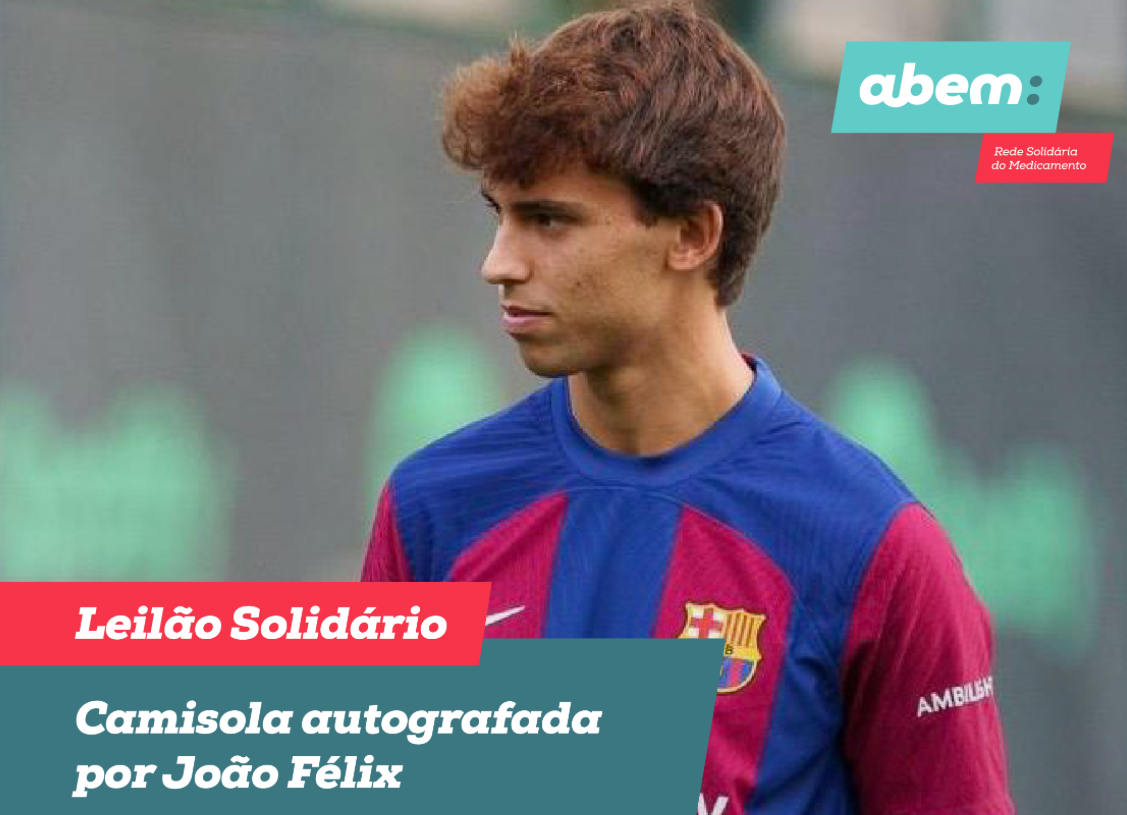 O avançado português João Félix junta-se ao Programa abem: Rede Solidária do Medicamento, ao doar uma camisola oficial do Barcelona autografada, que será leiloada entre os dias 17 de junho e 1 de julho. O valor irá reverter integralmente para o Programa abem: da Associação Dignitude, que apoia famílias em situação de pobreza a acederem aos medicamentos de que precisam.
