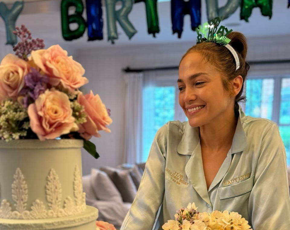 Após a festa, Jlo surgiu nas redes sociais de pijama e cara lavada com um lindo sorriso em frente a um grande bolo de aniversário, onde partilhou uma mensagem de agradecimento aos “melhores e mais incríveis fãs do mundo“.