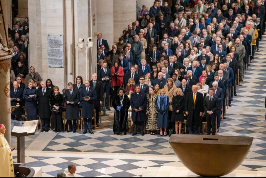 Mais de 40 chefes de Estado e de Governo, políticos de todo o mundo, celebridades e membros da realeza, assistiram à cerimónia, como foi o caso de Trump, do presidente ucraniano, Volodymyr Zelensky, da ainda primeira-dama dos Estados Unidos, Jill Biden, do príncipe William, dos reis da Bélgica, dos monarcas de Luxemburgo, do empresário norte-americano Elon Musk, de Nicolas Sarkozy e Carla Bruni ou da presidente do Banco Central Europeu, Christine Lagarde.