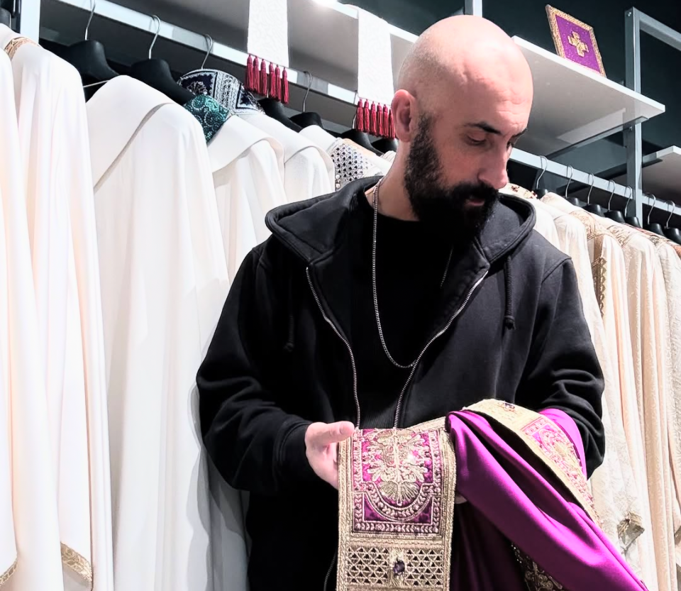 Filippo Sorcinelli estudou arte sacra e tecelagem histórica. Aos 13, tocava órgão em catedrais. O trabalho inovador com vestes religiosas rendeu-lhe a uma exposição temática no Museu Diocesano de Milão, em 2018, e um Prémio Arte e Liturgia do Instituto Pontifício Litúrgico (2021).