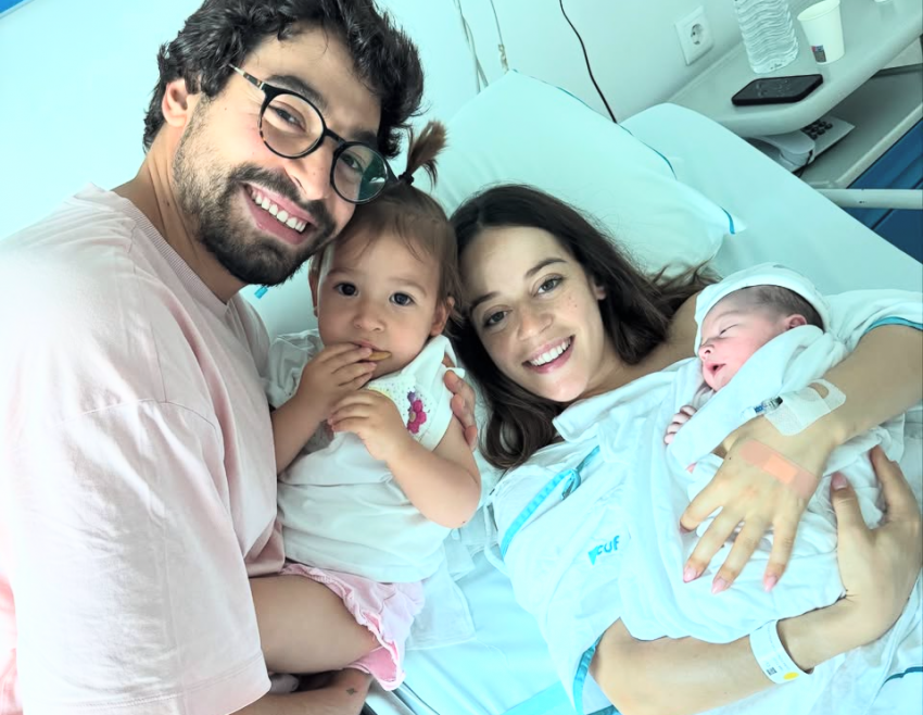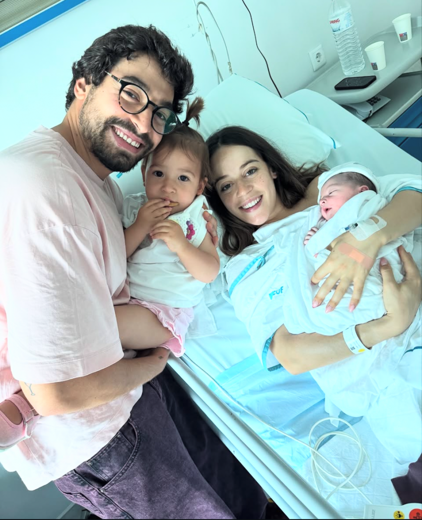 “Bernardo. 4-6-2025“, escreveu Buba Espinho na legenda de imagens, onde surge ao lado do novo membro da família, da atual companheira, Luísa Caroucinho, e da filha mais velha, Maria Amália, de um ano.