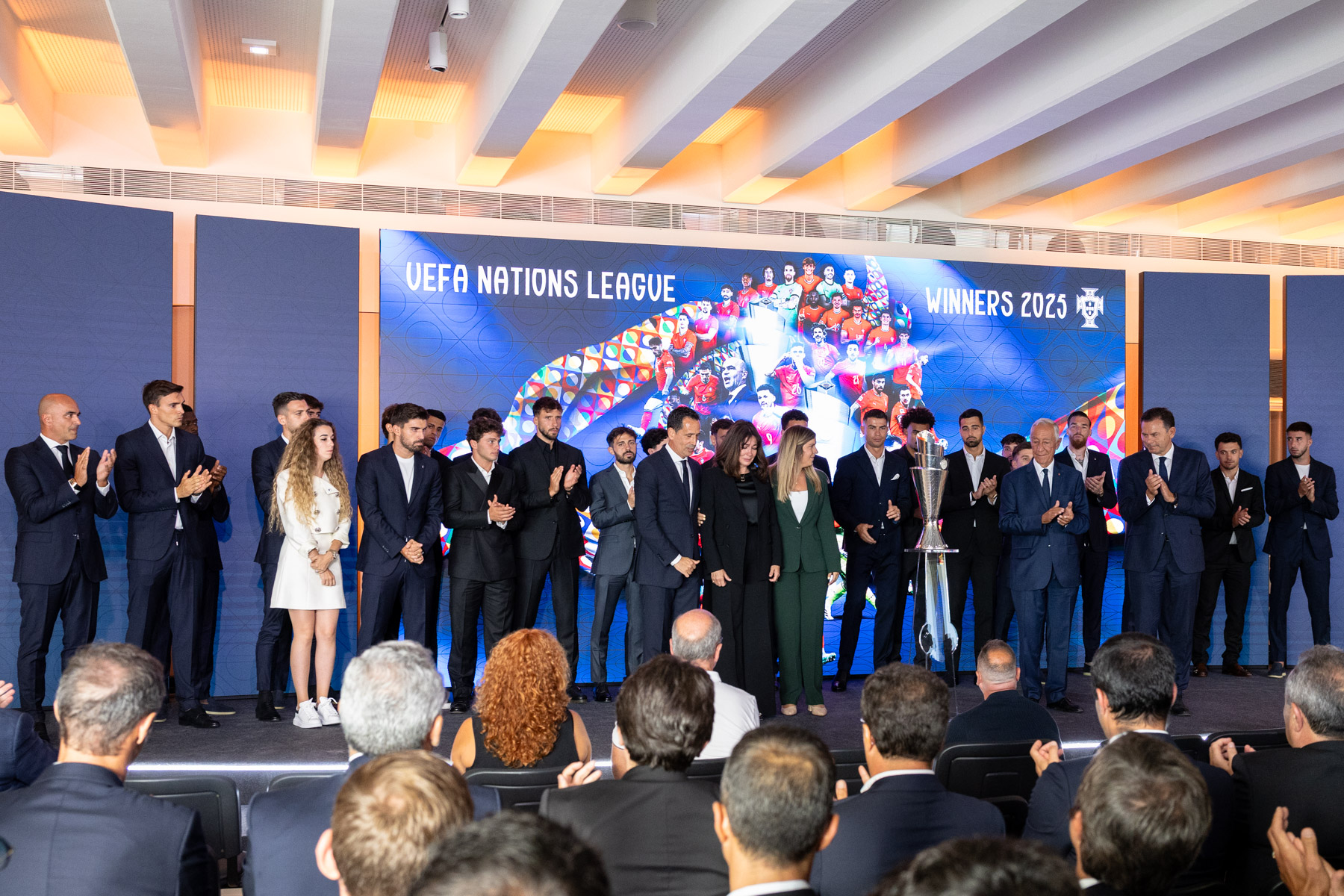 O capitão Cristiano Ronaldo esteve presente, assim como os restantes jogadores da seleção e o selecionador Roberto Martínez. O empresário Jorge Mendes, também marcou presença na homenagem. Veja as fotos: