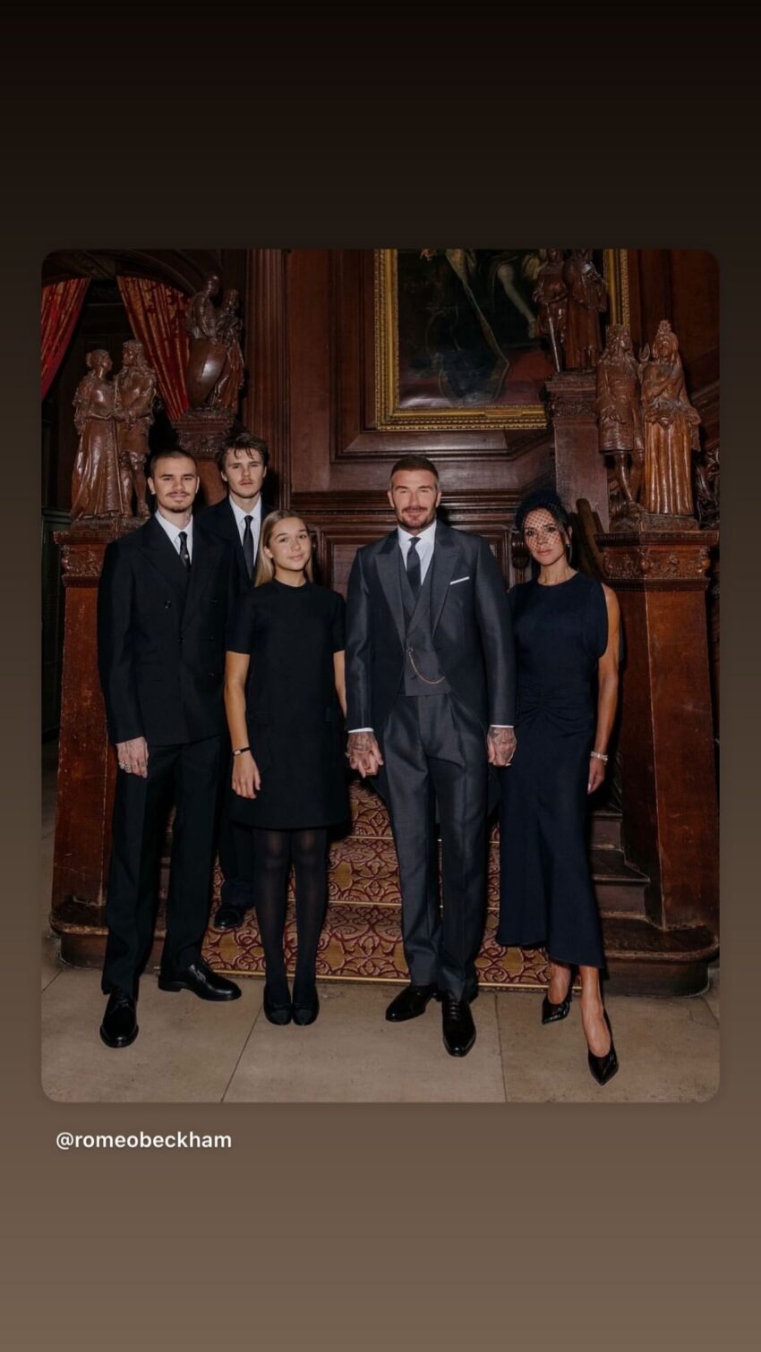 Os filhos de Sir David, Romeo, Cruz e Harper, também participaram orgulhosamente na cerimónia, apenas o mais velho, Brooklyn, não esteve presente.