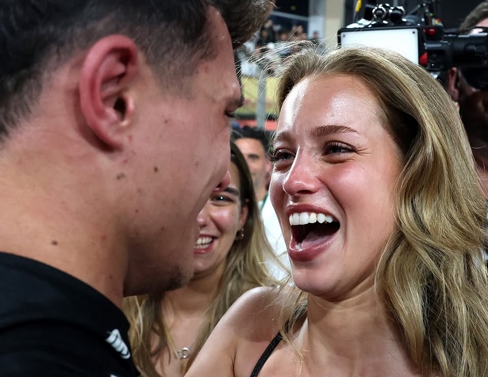 Ela, que assistiu às corridas com a equipa McLaren ao lado dos pais de Norris, era a segunda na fila dos cumprimentos, mas essa relação aparentemente instável, deixou de existir. Ela foi prudente e aguardou. Agora, foi destaque nos festejos e sentiu-se oficialmente a namorada.