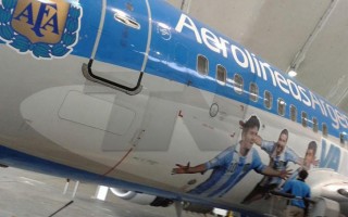 Avião da Argentina para o Mundial tem foto de Messi em destaque