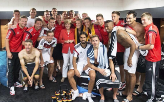 Angela Merkel foi ao balneário felicitar a seleção alemã